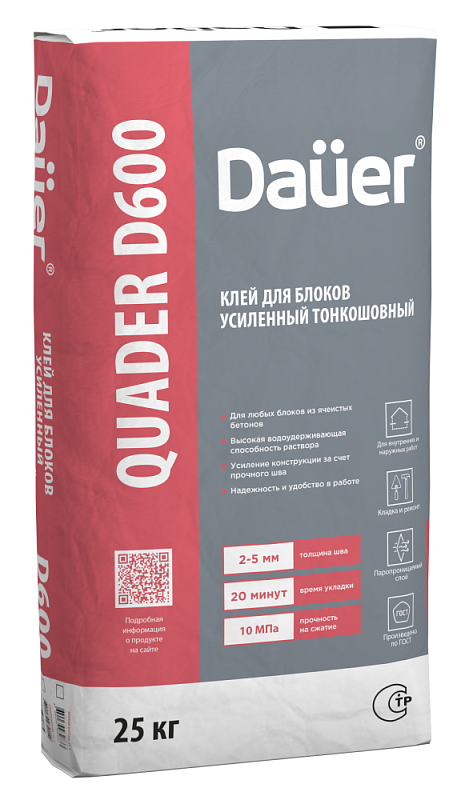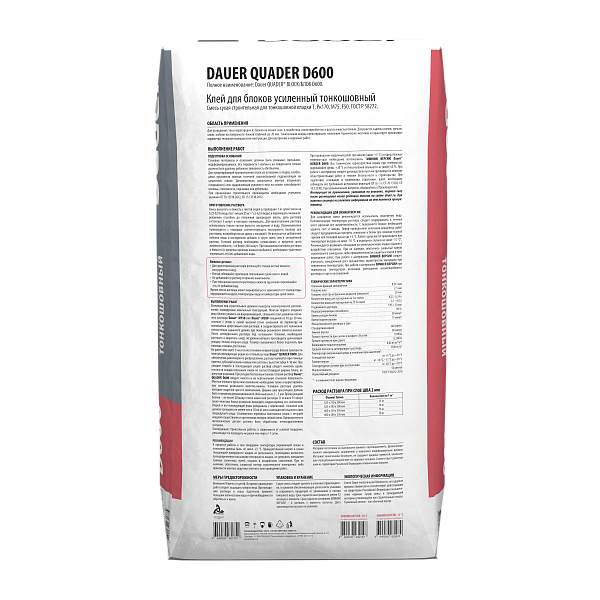 Клей для блоков: QUADER® BLOCK D600 , упаковка 25 кг